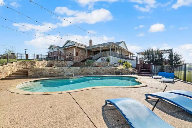 Get away from it all when you stay under the stars at this private fully furnished Alvarado escape. Our farmhouse is on top of the hill and overlooks the beautiful landscape that Texas has to offer! With cattle on the nearby ranches and the private pool in the backyard, this home is the perfect getaway to experience the peacefulness and tranquility that you are searching for!