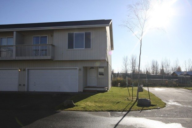 South Anchorage condo with 3 beds, 2 baths, a 2 car garage, and 1369 sq. ft. Features include an open living room and sizable bedrooms. Pets allowed on approval.