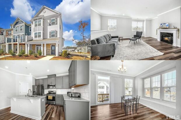 Beautiful end unit townhome in Apex, with features like an open kitchen, fireplace, back deck, 2 car garage, and spacious bedrooms.
