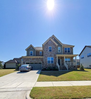 Beautiful home in a desirable Apex location! Rocking chair front porch welcomes you home! Hardwood floors throughout the main living area! Formal dining room! Large family room with great natural light and gas fireplace! Spacious kitchen w/ great cabinet space, eat at island & gas range! Eat in the kitchen area! 1st floor guest bed/full