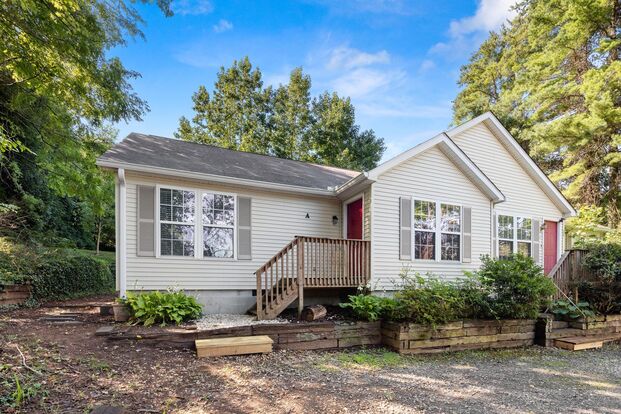 South Asheville Duplex - Nice South Asheville duplex with a large shared backyard - lawn care included! The living room is carpeted with a ceiling fan and is open with the kitchen, which has a door to the shared back deck and yard. Appliances include the dishwasher, refrigerator, and new electric range. Washer/dryer hook-ups are in the laundry closet off the kitchen. Carpet continues through both bedrooms, and the primary bedroom includes a ceiling fan and en suite bathroom with a shower/bathtub. The hall bathroom also has a shower/bathtub. Off-street parking designated for apartment A. Central heat and central air conditioning, all electric. Tenant responsible for all utilities, including electricity and water. Lawn care included. One small dog 20 lb or less is negotiable. No smoking. No cosigners.