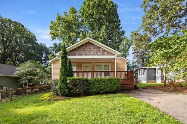 Cute one-level home in Arden! Hardwood and tile floors throughout. Grassy and shady yard space includes off-street parking - lawn care and landscape maintenance are included! Great location close to Hendersonville Rd and Biltmore Park - no through traffic on a dead-end street. Sweet covered front porch and open back deck. The eat-in kitchen has a breakfast bar and includes the electric range plus NEW appliances including the refrigerator, dishwasher, and microwave. The primary bedroom includes an en suite bathroom. Both bathrooms include a combination bathtub/ shower. In-home washer and dryer hookups. Central heat and air conditioning, all electric. Ceiling fans are in the living room and each of the three bedrooms. Tenant responsible for all utilities, including water/sewer and electricity. Backyard utility shed available for tenant use. No cosigners. No smoking. One small dog under 25lb or one cat considered - an approved pet will require an $800 refundable pet deposit plus a $200 non-refundable pet fee.