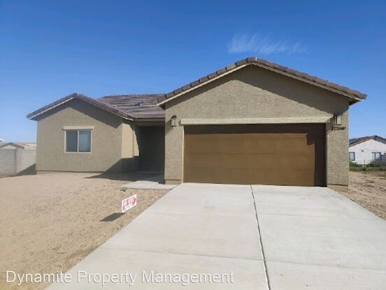 New Build Single Family home in Arizona City - Open, split floor plan with NO carpet, kitchen features Stainless Steel Appliances, White Shaker cabinets, and Quartz countertops with built-in microwave. Master suite with large double sink vanity and walk-in closet. NO HOA! No smoking, no cats, please. A 12-month lease is required. Pictures are of a model home, finishes may differ.
