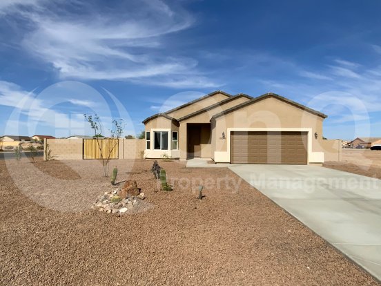 BRAND NEW HOME! This 2021-built, 3 Bedroom 2 Bath, 1483 sqft house in Arizona City is the most sought after home! With highly upgraded and modern finishes that include: 9x40 plank tile throughout, white shaker cabinets with stainless pulls and crown molding, quartz counters in the kitchen AND bathrooms! Open floor plan with front bay windows, vaulted ceilings, and a split master. Master includes walk-in closet, two bathroom sinks, and stand up shower! Custom 3-paneled interior doors. Neutral light grey paint throughout. Ceiling fans, brushed nickel bath fixtures, and dual-flush toilets. Sliding glass doors off the kitchen that open up to a huge backyard with a covered patio! Backyard also includes block fence with a 10-foot RV gate with lots of room to store an RV, trailer, or boat! 2 car garage with 2 electrical power plug ins on the wall for electric cars! Be the first to live in this beautiful home!