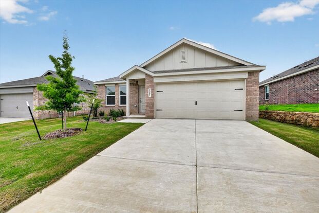 Welcome to this beautiful new home in the desirable Highpointe Ranch community in Aubrey. This single-family residence offers 4 spacious bedrooms, 2 full bathrooms, and a bright open-concept layout designed for comfortable everyday living. The peninsula-style kitchen features modern quartz countertops, stainless steel appliances, and flows seamlessly into the living and dining areas, creating a warm and inviting space filled with abundant natural light. Step outside to relax in your private backyard. Highlights include luxury vinyl plank flooring, carpeted bedrooms, energy-efficient features, central heating and cooling, high-speed internet included at no extra charge, and a two-car garage. This community offers both charm and convenience, with quick access to nearby schools, dining, and major commuter routes. This home provides modern comfort in a fast-growing North Texas community seeking space, style, and easy living.