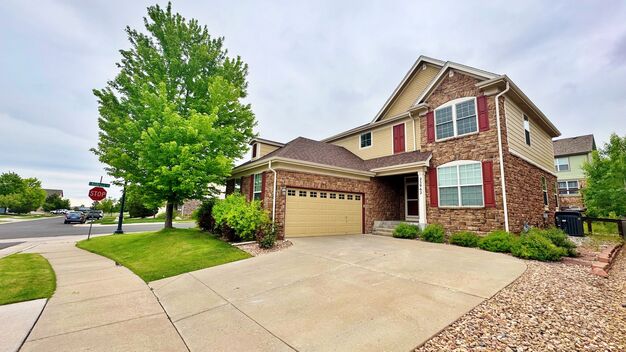 Welcome to this fabulous light filled Home in Serenity Ridge! 3 Bed 2.5 Bath + Bonus Room on Main Floor. Wood Flooring and Carpet on Main Floor. Carpet Upstairs with massive Unfinished Basement. Mud/Utility Room with WD and Mounted Microwave. Great Kitchen Black Appliances with Wood Flooring into the Dining Area by Sliding Glass Door to Fenced Beautiful Backyard. Nice Patio with Privacy Fence to Sit and Soak Up the Sun. Upstairs Large Main Bed with En Suite 5 Piece Bathroom. Large Walk In Closet. Ample 2 Bedrooms with Closets and shared Full Bath finishes off upstairs. Open Hallway lets you look over to the Large Hall Living Room. Beautiful Home with so much light and open plan concept to put that large furniture wherever you want! 1 Mile Away from Cherokee Trail High School! 2 Miles from Southlands! Lots of Shopping/Entertaiment and quality Restaurants. Direct to E-470 and Buckley SFB or South to I-25!