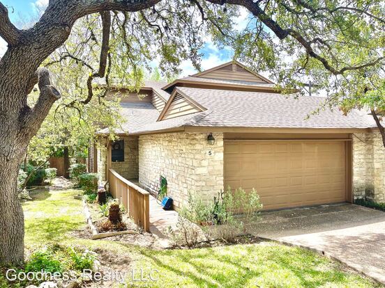 Beautiful 2/2.5 with two-story 2 owner suites full en suite baths floorpan (1 BD down and 1 BD up) nestled in the Austin hills conveniently off 2222. New paint. Laminate flooring through out, cozy fireplace, soaring ceilings and abundant natural light; two car garage; Full kitchen with all appliances. Office/loft is upstairs overlooking the family room. Private back yard with deck and fenced-in yard. Relax at the community pool or take a hike at nearby Bright Leaf Preserve. Outstanding location in the scenic central west Austin minutes to shopping and highway access. AISD schools Lamar, Highland Park, McCallum. Small pets negotiable. Available May1, 2023.