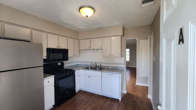 - A fully equipped kitchen with a refrigerator, gas range, gas stove top, and garbage disposal, perfect for culinary enthusiasts