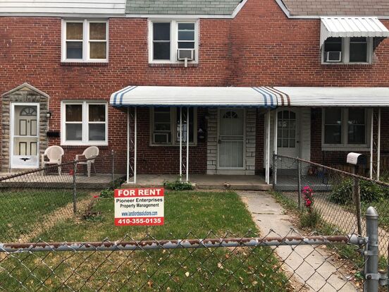 This property is located off of Washington Blvd. (Rte 1) located in a quiet, child-friendly neighborhood. It's 2 blocks from a park with 2 baseball fields. It's a short drive to Baltimore's Inner Harbor area and minutes to I-95 & I-695 routes. The home offers 3 levels inside and gated yards in the front and back. The first floor has a living room, dining room, and kitchen. Kitchen to include oak wood cabinets with white appliances (Refrigerator, Gas Stove, Over Stove Exhaust Fan). Vinyl tile flooring in the kitchen and bathroom. The home has hardwood floors on the main and top floors. Ceiling fans throughout!! The bathroom has a skylight, vanity, white toilet, steel tub. The second level has a bedroom in the front and rear of the home and a full bath in the center of the floor plan. The partially finished basement in the front of the basement with the washroom in the rear area of the basement with a washer and dryer that leads out the rear yard. Pets are okay, with a pet rent.