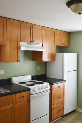 This large 2-bedroom apartment is located on the 1st floor and features 2 nice size bedrooms, a large bathroom with a tub. It has been completely remodeled with brand new kitchen cabinets and appliances in 2010. Measures about 900 sq feet.