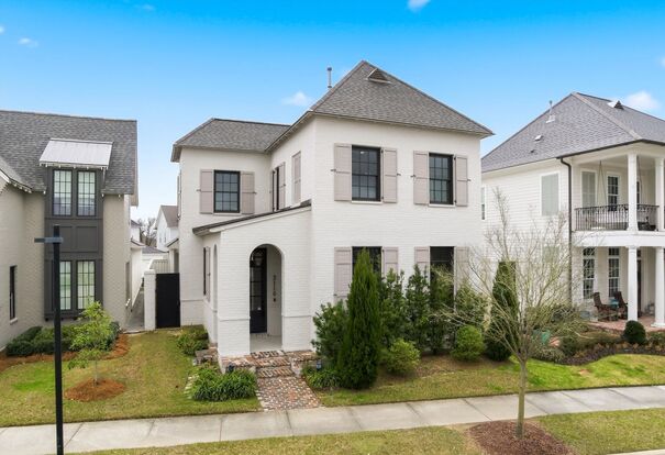 The heart of the home is the open living and dining area, accentuated by exposed brick archways and a gourmet kitchen with ample cabinetry, a walk-in pantry, and plenty of counter space for cooking and entertaining. French doors open to an expansive side porch featuring a fully equipped outdoor kitchen, ideal for gatherings, dining al fresco, or enjoying Louisiana’s beautiful weather.