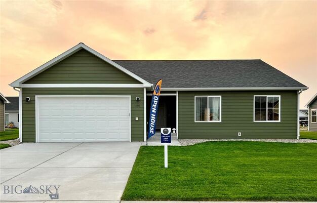 Don't miss out on this brand-new three-bedroom home. Bridger Heights is a young, vibrant community with a central park and trail system, boasting some of the Best Bridger Mountain views. This home charms with an open living plan, vaulted ceilings, and a large kitchen island, great for entertaining or cozy dinners. Sliding glass doors lead to a backyard patio for Summer grilling. The primary suite has an attached bath with a walk-in shower and dual vanities, a walk-in closet, and a ceiling fan.
