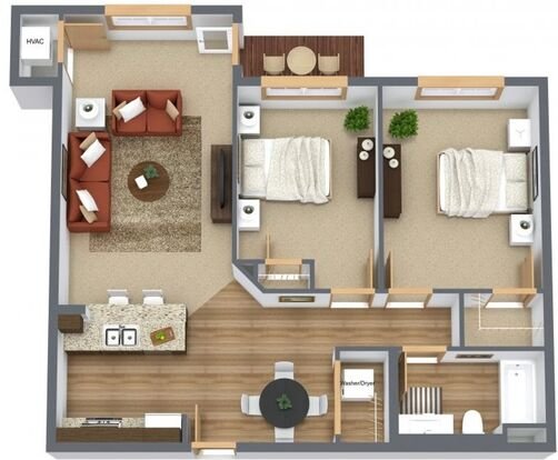 Hickory Grove Apartments (b) provides 12% less square footage than the average Belle Plaine 2 bedroom apartment.
