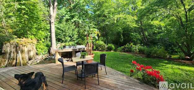 Hidden Treasure in Factoria. This 1-bedroom home is the perfect setting for a work-from-home environment or going to work with public transportation in walking distance as well as access to highway close by. High speed internet is available. The large patio opens up to see the beautiful nature around Coal Creek which runs thru the backyard. You can enjoy a cup of tea or coffee sitting on the deck listening to the sound of the river. Dogs will love to play in the large backyard. No highway noise. It takes only minutes to get to Factoria Mall or a short 10-min drive to downtown Bellevue. Lots of trails for running or taking your dog outside. Private Estate in very natural setting in forest with Coal Creek. Full-size kitchen fully stocked with plates, bowls, pots, pans, silverware, etc., bathroom with shower. Washing machine and dryer are within the unit. Bedroom has a full bed and a closet. The living room is open with office desk, lounge chairs, sideboard and Cable TV. Parking is available in front of the entrance door. This home is attached to the main house where landlord lives. Rent is $2,600.00 plus utilities and internet. 1 year lease or longer available. Background Check required.
