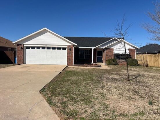 Great split floor plan, 3 bedroom 2 bath home in the heart of Bentonville right off the Greenway Trail. Convenient to Wal-Mart Home office. Large eat in kitchen, all appliances provided. Fresh paint throughout and no carpet. Covered patio overlooks large backyard with storage shed. Summer provides privacy at the back fence by the trail.