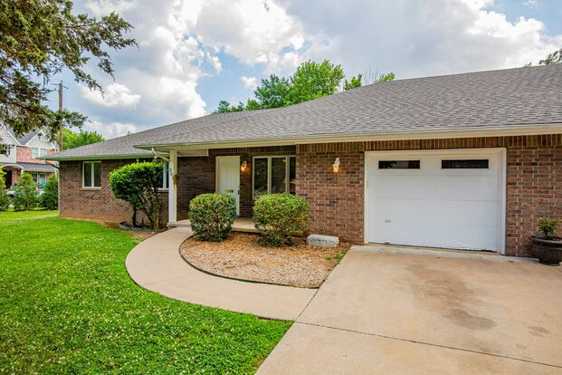 Awesome location close to Downtown Bentonville!!! Well maintained 3 bedroom 2 bath duplex has formal living room and open dining room/great room kitchen, large pantry, extra storage in the utility room. Covered patio, fenced yard, 1 car garage and additional storage building in back yard. Yard care is included.