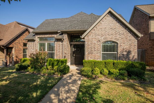 Beautiful home in the Stone Meadow Subdivision. This 3 bed 3 bath home in Bentonville. Living room includes hardwood floors, vaulted ceiling with beams and electric fireplace. Kitchen features granite counters and stainless appliances, including refrigerator and over range microwave. Master and 1 additional bedroom and full Bath on main level. Master has double sinks, large tile shower and walk in closet. One full bed and bath upstairs. Fenced in yard area with patio. Lawn care, club house and pool are also included. Fenced in yard area with patio. NO CATS. Dogs are negotiable with Pet Deposit and additional pet rent.