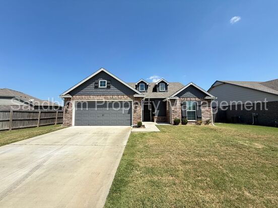 Gorgeous 4 bed, 2 bath home in Bixby's Pine Valley. Open floor plan accented with vaulted living space and eat-in kitchen with center island, granite counters, herringbone tile backsplash, and barn-door pantry. Kitchen includes all appliances including stainless refrigerator not shown in photos. Large primary bedroom features en suite bath with double sinks, custom shower & walk-in closet. Neutral paint & luxury engineered faux wood floors. Covered back patio and fully fenced yard for outdoor entertaining. Just around the corner from neighborhood pool & playground. Trails available for access to nearby Bixby West Elementary & Intermediate Schools. $2100/mo + $2100 security deposit.