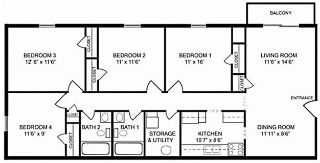 4 Beds • 2 Bath