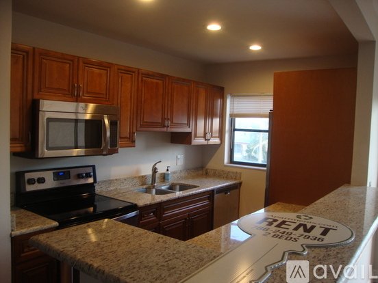 Apartment has beautiful street view, open concept kitchen with S/S appliances, granite countertops, wood floors, new central A/C units, screened patio and large walk-in closets. Laundry is located close to apartment. There is assigned parking space and plenty of guest parking. Apartment is located in a 2 story condominium in quite upscale neighborhood. Condo Building is walking distance to shopping plazas - Publix and restaurants and close to Trader Joes and Whole foods supermarkets and has a garden with barbecue area and Large swimming pool.