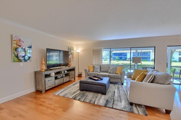 Inside, the home features generously sized bedrooms, including a primary suite with a walk-in closet, along with a spacious living and dining area ideal for everyday living. The kitchen offers ample cabinet and counter space along with essential appliances. Offered furnished with assigned parking and no membership required, this is a great seasonal opportunity.