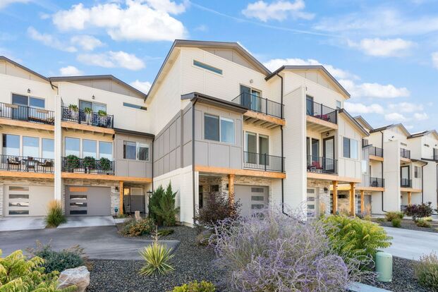 Amazing views AND a backyard! This charming home located in Central Boise features beautiful views of the Boise Foothills and offers close access to the Boise River Greenbelt. This is a 3 story townhome with access to a garage and laundry room on the 1st floor, the living space and kitchen is on the 2nd floor, and bedrooms are located on the 3rd floor. There is an en suite bathroom connected to the main bedroom, and a shared full bathroom for the other two bedrooms. There is also a half bath located on the 2nd floor. 3 balconies in this home: 2 off of the 2nd floor living space, and 1 off of the main bedroom. Fenced backyard and dog door access to use at their leisure! Landscaping included!