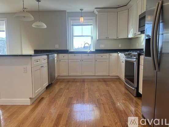 Luxurious one-bedroom apartment offering modern comfort and convenience. This bright and spacious apartment features gleaming hardwood floors throughout, stainless steel appliances, in unit laundry, and central air conditioning and ceiling fans for year-round comfort. The bedroom also boasts custom closets providing excellent storage space. Tenants have access to a shared patio area featuring two gas grills, a fire pit, and a dog play space. One garage parking spot is included. Located close to restaurants, shops, and public transportation, this apartment combines luxury and lifestyle in one of West Roxbury’s most desirable neighborhoods.