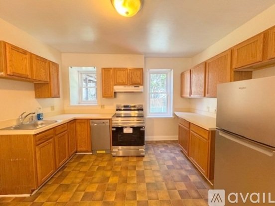This unit makes up the first floor of a brick 2-Family Home. The unit offers an open floor plan with a spacious living room, large eat-in-kitchen, and two equally sized bedrooms- both of which can accommodate queen beds.