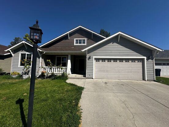 This lovely 3 bedroom, 2 bathroom home is perfectly located in Bozeman. It is close to both parks and schools, and, being centrally located, it is only a short drive to practically anywhere in Bozeman. The full kitchen includes a refrigerator, dishwasher, microwave, and a stove and oven. The master bedroom features a large walk-in closet, and the master bathroom has double sinks in a beautiful granite counter top. The double attached garage is perfect for extra storage space, or parking space away from the snowy winters. This home has front deck space, and the back patio is surrounded by a large, partially fenced yard. No pets or smoking please!