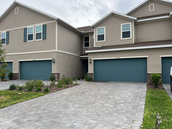 Do not miss out on this highly desired newer-build two story townhome in the conveniently located gated community Woodleaf Hammock of Lakewood Ranch. 3 bedroom, 2.5 bath, 2 car garage built by Meritage Homes. This pristine property offers a lake view from the residence, offering large windows letting natural light shine throughout. The ground floor offers tall lofty ceilings with tile flooring and an open floor plan. The kitchen is equipped with granite countertops, fresh white cabinets and stainless-steel appliances. A convenient kitchen island is large enough to prepare food and serve as it overlooks the living space. A half bath is conveniently available on the ground level. All three bedrooms are available on the upper level and large enough for a king size bed, with plush carpeting. The spare bedrooms share a full-size bathroom. The primary suite is spacious and feels private from the other bedrooms. The primary bathroom is equipped with dual sinks and shower. The laundry room is located upstairs for convenience. Enjoy the amenities that come with this gated community - Community pool with outdoor kitchen, pickleball courts, playground and a dog park for your furry family members. Lawn care included.