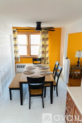 Adjacent to the living room, the dining area provides an intimate yet functional space for meals, conveniently positioned near the kitchen for easy access. The kitchen is efficiently designed with ample cabinetry and workspace, ideal for daily use.