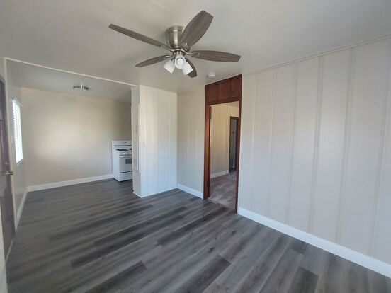 Spacious~Private~Remodeled STUDIO w/Parking...Available Now! - Bright and airy one bedroom apartment located in Buena Park! This is a good size apartment with hardwood floors throughout the unit and new, two-tone paint. Kitchen is beautiful, new backsplash and upgraded fixtures. Studio is a good size and has plenty of closet space. Building has on-site laundry, includes one parking space.