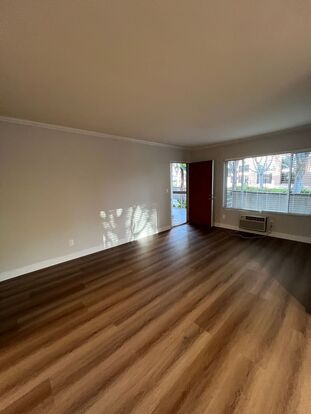 Spacious, Fully Remodeled Studio with Floor to Ceiling Windows - Fully remodeled, large studio in the heart of the Burbank’s Media District. Wood-style flooring throughout the unit with floor to ceiling temperature-controlled windows. Stainless steel appliances and quartz countertops in the kitchen and bathroom. Plentiful storage and built ins with ceiling fan and powerful wall AC in the unit.