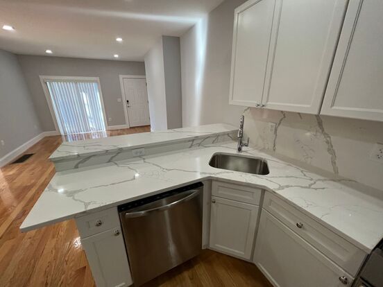 Beautiful white-granite countertops and cabinets