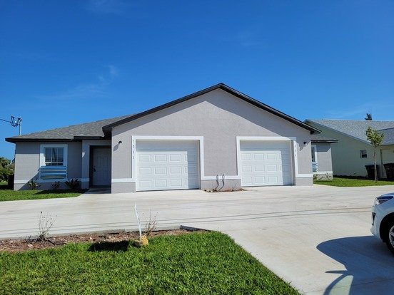 Brand new 3 bedroom 2 bathroom duplex located on a large beautiful canal. This property is located in a very desirable location in Cape Coral. This home is brand new with stainless steel appliances and tile through out. This home will welcome 1 small dog under 20 lbs. but no cats please.