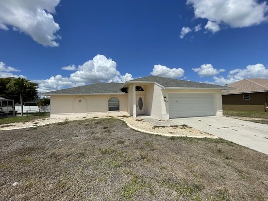Three bedroom two bathroom, two car garage, , Lanai and fenced private backyard quiet street convenient south West Cape Coral location voltage ceiling in the living room and white tile floors throughout the house . new double sink vanity cabinet and updated generous size shower in the master bathroom . Master bedroom spacious with two windows. Kitchen with natural wood cabinetry big window and open counter to the living room .the house freshly painted in the light grey colour.