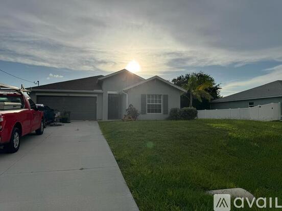 Nestled in Cape Coral's tranquil neighborhoods, this exceptional 4 BR/2Bath/2 Car garage single-family home offers an enchanting blend of modern comfort and tropical paradise living. Welcome to your very own haven of relaxation and luxury. Pictures are shown for staging purposes only, the house is unfurnished and you can furnish and decorate it as per your taste. This new single-story home design showcases an open-concept main living area consisting of the family room, dining room, and large kitchen, which features a walk-in pantry. This home features a total of four bedrooms including a spacious owner's suite with a walk-in closet and a luxe bathroom with dual sinks. Tile throughout home.