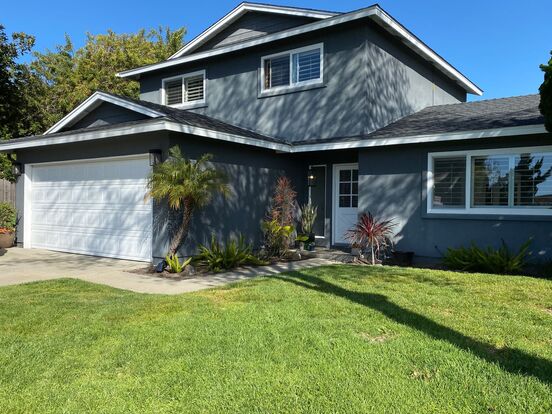 Gorgeous Carlsbad 4 bedroom, 2 bath home on a lovely cul-de-sac is a must see! Recently remodeled this home features a spacious light bright kitchen with stainless steel appliances, plenty of cabinet storage and beautiful quartz countertops. The cozy living room includes a fireplace with a stylish accent wall. Primary bedroom and bathroom are located downstairs. Upstairs are 3 bedrooms and an additional bathroom. The backyard is very spacious and private, surrounded by mature trees. Lush lawn and large patio space creates the perfect space to enjoy family and friends. Luxury vinyl plank flooring throughout, custom paint colors, and classic touches such as wood shutters and wainscoting add to the sophisticated coastal style of the home. Home also has solar! Gardening services included. Located just 2.5 miles to the best beaches in Carlsbad!