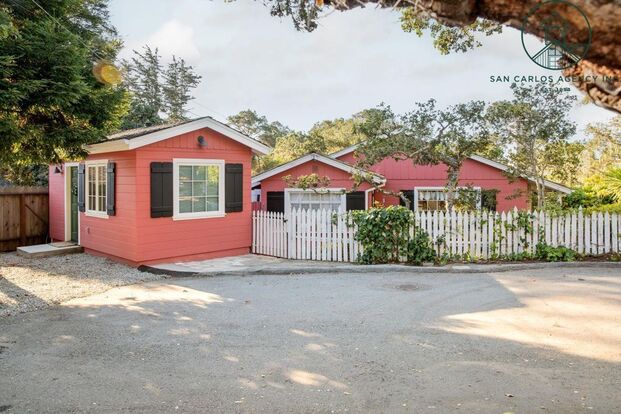 (SHEDM) San Carlos Agency, Inc. offers this enchanting coastal gem nestled among picturesque twisted oaks sited on a spacious lot complete with detached ADU to boot. The main house offers three bedrooms, two of which share a hall bath (tub/shower) and an additional bedroom with an en-suite bath that is also off the inviting, open beam ceiling living area. The kitchen is adorable and complete with stainless steel appliances (refrigerator, Viking gas range, dishwasher, microwave, and disposal), an eat-in bar area as well as an adjacent formal dining room. The detached ADU is newly remodeled with an en-suite bath and kitchenette. There are multiple outdoor patio areas around the home amongst the oaks and fully fenced and manicured garden. There is also a storage shed for tenant use. The stackable washer/dryer (left as a courtesy to tenant) is located in a laundry room off the dining area. The home has been refreshed with new paint, refinished wood floors, some new lighting and a new forced air HVAC system. There is one off-street parking spot adjacent to the ADU. Available unfurnished with a one year lease. Tenant pays all standard utilities except landlord will pay for gardening. Small pet considered. No smoking. Contact San Carlos Agency, Inc. at (831) 624-3901 or rentals@sancarlosagency.com to schedule a showing. Visit www.SanCarlosAgency.com or www.CarmelRentalProperties.com.