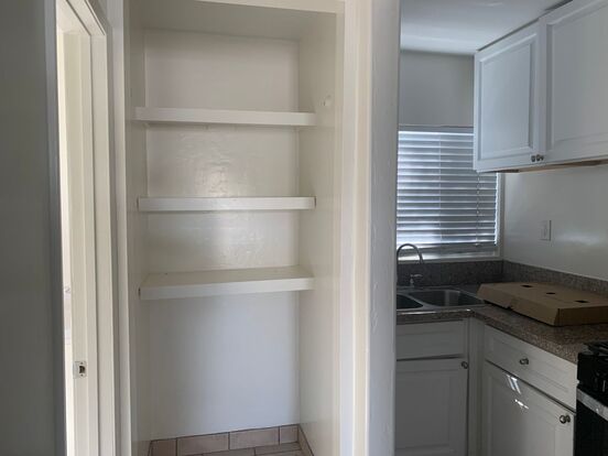 Recently remodeled, the apartment features tile flooring throughout, an open plan entry and living area and small kitchen space with new gas oven/stove and new fridge/freezer. The bedroom to the back of the apartment features a small walk-in closet and en-suite bathroom with a tub.