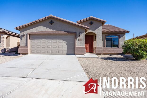 Welcome to your spacious home located in the Greens Subdivision, next door to Dave White Golf Course near Casa Grande, Arizona. The home comes with all black kitchen appliances, including an electric stove, refrigerator, microwave and dishwasher. The master bathroom has dual sinks with a separate shower and garden tub. Enter into the large open rear yard that is fenced. You will have access to a 2 car garage and bring your electric washer and dryer to hookup in the laundry room.