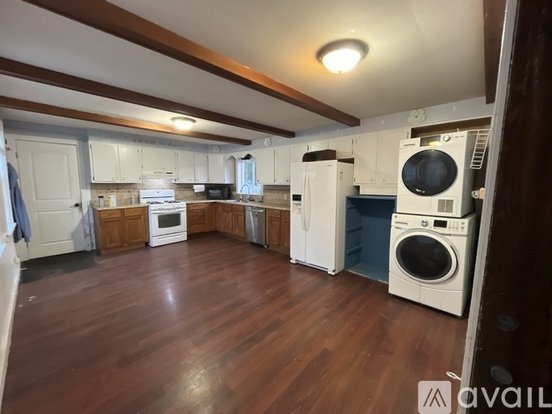 Well behaved pets allowed (very close neighbors, barking has been an issue). Small fenced dog area off back door, larger fenced play area in the park-like backyard, cute babbling brook in the far backyard (and sometimes ducks!). 2-3 parking spots in shared driveway. Covered front porch with porch swings. Fire hydrant right in front of the house (awesome safety perk!). Laundry and dishwasher included. Gas stove.