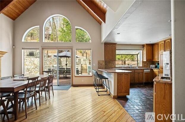 From the moment you step inside, you'll be captivated by the home’s soaring ceilings, rich wood floors, and large windows that flood every room with natural light and frame the serene forest views. The generous living areas are centered around two beautiful wood-burning fireplaces, creating a cozy yet open space for family gatherings or quiet evenings in.
