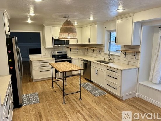 - Gorgeous updated kitchen - quartz counters, NEW stainless appliances, cool island