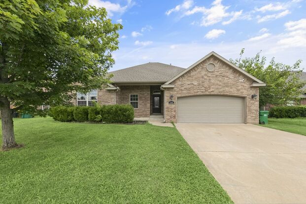 This charming all-brick home features three bedrooms and two bathrooms, and highlights of the property include custom cabinets, granite countertops, tile floors, raised ceilings, and a covered patio.