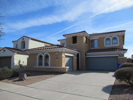FRESH PAINT and NEW CARPET / VINYL FLOORING! Beautiful open entry with vaulted ceilings, Large open kitchen with island and pantry, One bedroom with bath, laundry and half bath on first level, Family room, formal living and dining rooms, Master, 2 bedrooms and loft on second level, Full master bath with double sinks, separate tub, shower and walk in closet, Cul-de-sac lot, Mountain Views and North/South exposure. Covered patio with view fence to greenbelt with ramadas, playground and exercise paths, 3 car garage. No Pets allowed. No Smoking.