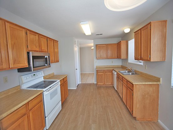 4 bedroom + 2 bathroom home with all new exterior paint! Kitchen features range/oven, dishwasher, microwave. Dining are off the kitchen. Large living room with fireplace. Carpet an tile in all the right places. Ceiling fans and blinds throughout. Master bedroom has tub/shower, and walk-in closet. Large backyard with easy to maintain landscaping.