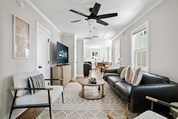 The private back patio offers a serene outdoor space with turf grass, two comfortable chairs, and a fire pit, perfect for relaxing evenings. Parking is available in the driveway, accommodating one car. Experience the comfort and convenience of Coral Cottage, where modern amenities meet the historic charm of Charleston. Book your stay today and enjoy your home away from home!