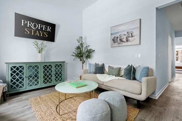 Welcome to the Haint Blue Suite, a recently renovated haven nestled in the heart of downtown Charleston. This first-floor, two-bedroom, one-bathroom apartment is the perfect choice for a 30+ day stay, offering comfort and convenience with a touch of southern charm.
