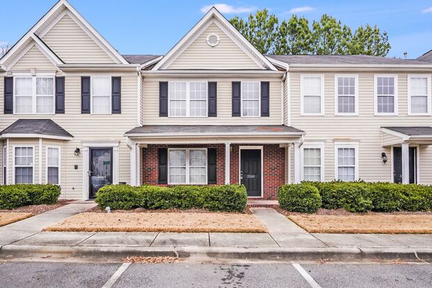 Charming 3-bedroom, 2.5-bath townhome featuring a welcoming front porch and beautifully updated laminated wood flooring throughout. The main level offers a cozy great room with a gas fireplace, a convenient washer and dryer, and a spacious kitchen that flows into an inviting dining area perfect for everyday meals or entertaining. Upstairs, the large primary suite boasts vaulted ceilings, a private bath with a relaxing garden tub, a separate shower, and a generous walk-in closet. Enjoy outdoor living on the comfortable patio, complete with an additional storage closet for added convenience. A lovely home that offers comfort, style, and practical living all in one!